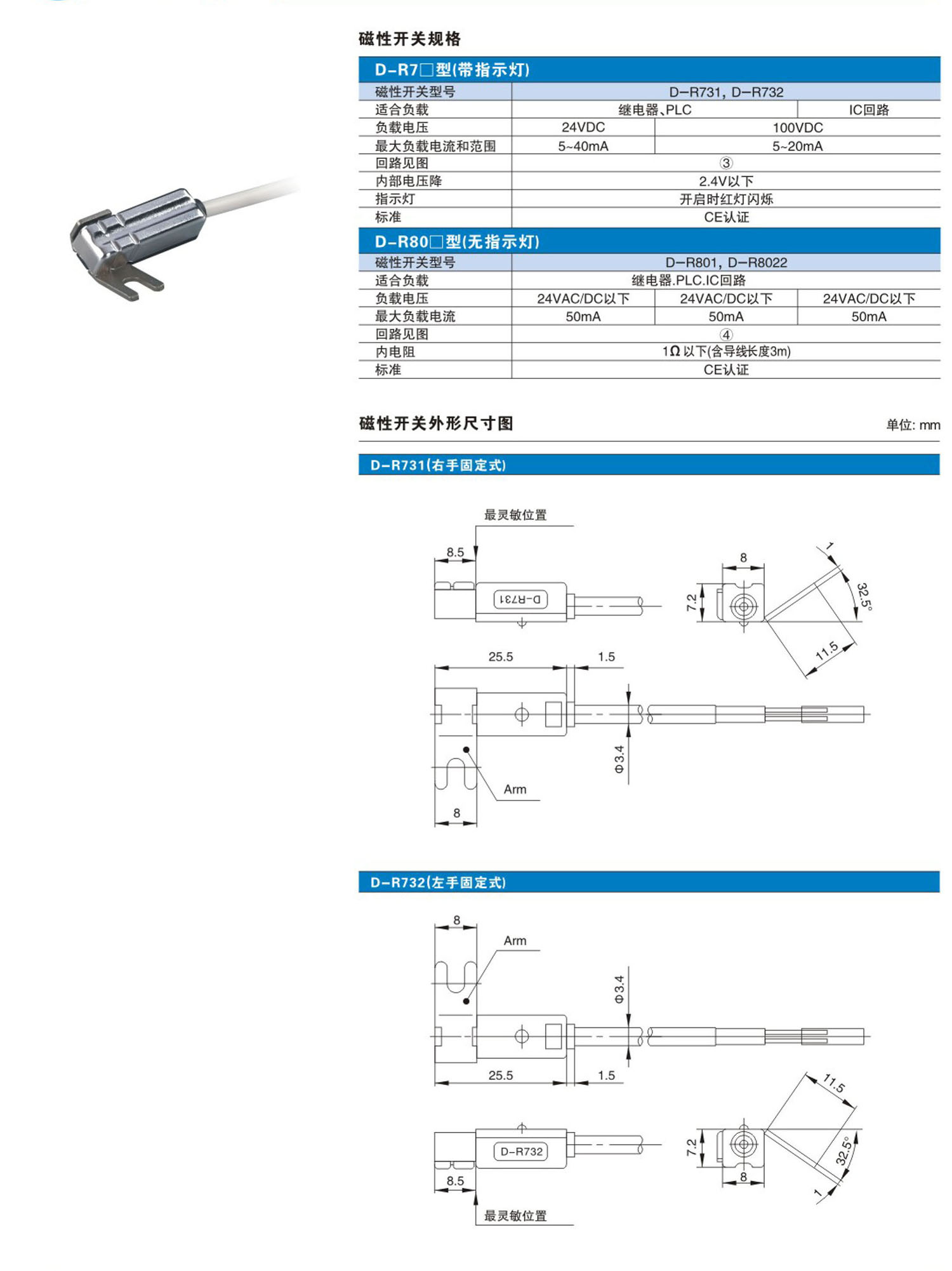 D-R7口·D-R80口系列有觸點磁性開關